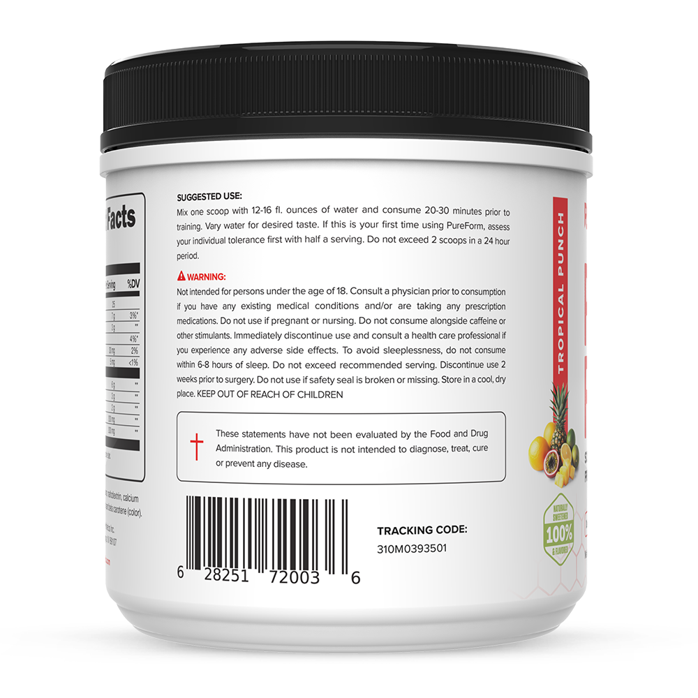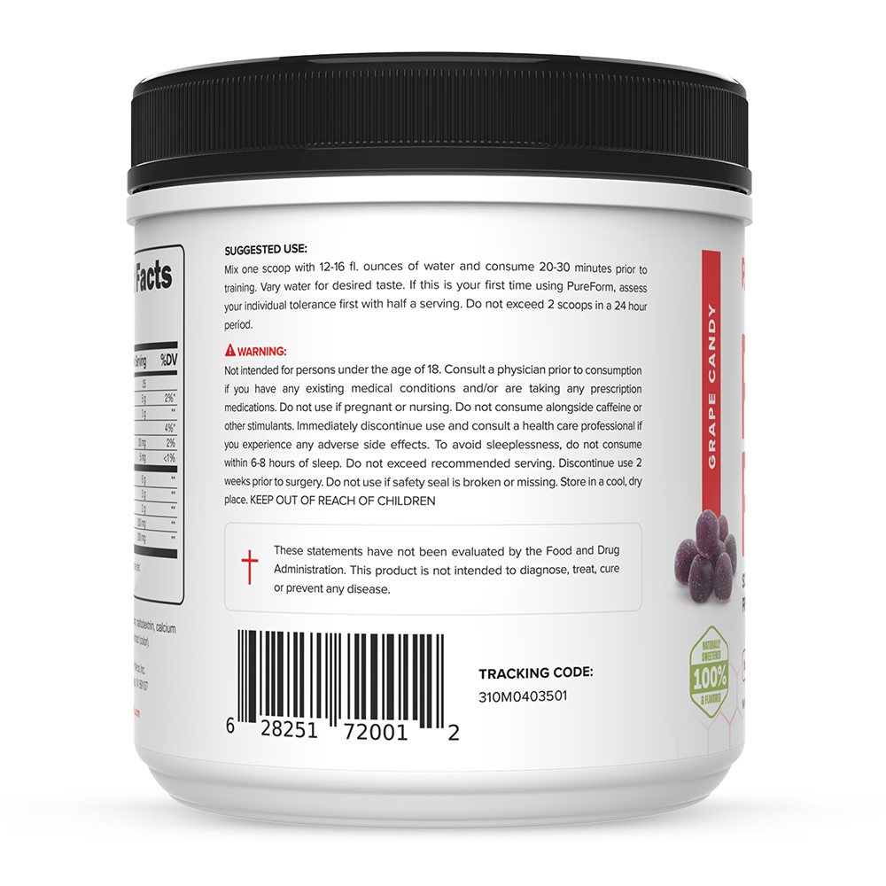 PureForm takes the opposite approach of all those over-hyped commercial pre-workout blends by honing in on a smaller number of key ingredients and including them in their full dosages and highest quality forms.